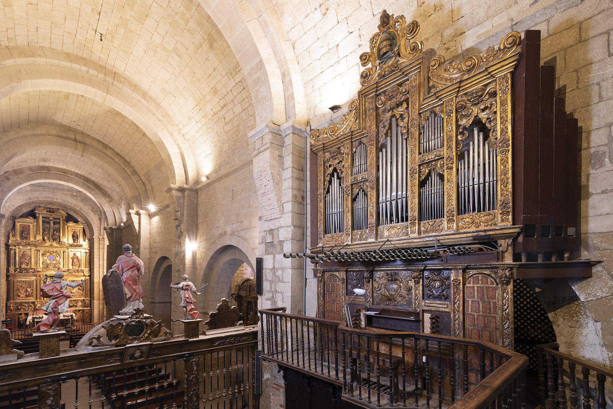 Cabecera recta, compartiendo muro de cierre con uno de los torreones del antiguo castillo cuyo interior se compartimentó para alojar dos capillas y la sacristía, comunicadas con la iglesia mediante accesos de medio punto, una de las capillas todavía conserva el cerramiento con bóvedas de crucería estrellada, la única de todo el recinto. La capilla mayor se reduce a un tramo rectangular cubierto con bóveda de medio cañón que abre al crucero con gran arco de medio punto. Todo se encuentra decorado con yeserías.Por el lateral izquierdo se practicaron unas escaleras de acceso a la cripta, situada bajo la cabecera, donde se enterraba a los monjes del monasterio. La cripta es de planta rectangular y está cubierta por bóveda vaída, en los muros se practicaron nichos para colocar los cuerpos.El cuerpo de nave compuesto por una sola nave con capillas entre los contrafuertes comunicadas entre si por huecos cubiertos con bóveda capialzada, abiertos por un lado en arco de medio punto y por el otro con arco rebajado; presenta falso crucero, tribuna y coro elevado a los pies. La iglesia se cubre con cúpula semiesférica sobre pechinas en el tramo central del crucero, bóveda de cañón con lunetos en los brazos del crucero y en la nave, todo sobre pilares rectangulares.Destaca bajo el crucero la tumba de nobles, donde se han encontrado varios cuerpos embalsamados, y en uno de los brazos del crucero la tribuna, elevada sobre una doble arcada de medio punto que apea en un pilar hexagonal; toda la estructura se decoró con pinturas de carácter figurado.En el tramo de los pies se elevó el coro sobre una bóveda de arista rebajada, se accede desde el tramo inferior tanto al coro como a la torre como a las dependencias monacales.Al exterior, los paramentos, elevados sobre zócalo resaltado y determinados por la combinación de materiales, sillarejo y sillar, están apenas articulados mediante contrafuertes y vanos. Destaca especialmente la fachada principal que consta de dos partes diferenciadas que corresponden a la iglesia y a las habitaciones de los monjes. La primera consta de un gran arco semicircular que cobija la portada de estilo renacentista que está a su vez compuesta por arco de medio punto dovelado flanqueado por dos columnas casi exentas, de fustes cilíndricos muy estilizados apoyados en pedestales, que soportan dos fragmentos de entablamento en los que a su vez apea un frontón triangular partido, de perfil moldurado, que aloja en su interior un hueco rectangular a modo de hornacina; este frontón a su vez tiene a ambos lados dos pequeños pilares adosados que se remataron con bolas.La zona de las habitaciones de los monjes posee una portada de piedra con arco de medio punto dovelado sobre el que hay sendos escudos que encuadran una hornacina, y coronando la portada se encuentra el escudo de la orden dominica.La fachada refleja perfectamente sus tres plantas con sus correspondientes líneas de ventanas siendo mayores los vanos de la segunda, mientras que los de la tercera se encuentran enmarcados por la cubierta y una imposta que recorre todo el edificio.La torre fue construida de traza muy sobria con unas proporciones de volumetría contundente. Situada en el ángulo suroeste de la iglesia se accede a ella desde el último tramo; consta de dos cuerpos separados por la misma cornisa de piedra que remata toda la fábrica de la iglesia. Ambos cuerpos están divididos en dos partes mediante una pequeñas impostas y abiertos con pequeñas saeteras y escasos vanos de medio punto. El remate del cuerpo superior aloja el cuerpo de campanas y abre en los cuatro lados mediante arcos de medio punto dovelados.